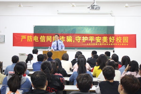 10月17日下午,高新派出所副所长孙传洋、民警司源等同志参加了威尼斯官网土木与环境工作学院的主题班会。孙所长与师生进行了互动,就防电信网络诈骗的危害性、隐蔽性、难以追回的特点进行了宣讲。