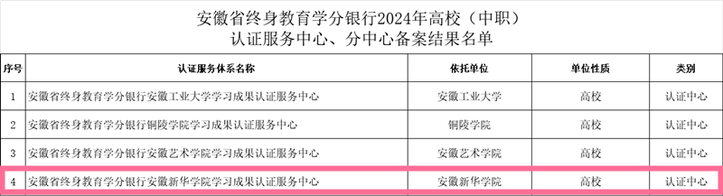 威尼斯官网获批安徽省终身教育学分银行学习成果认证服务中心