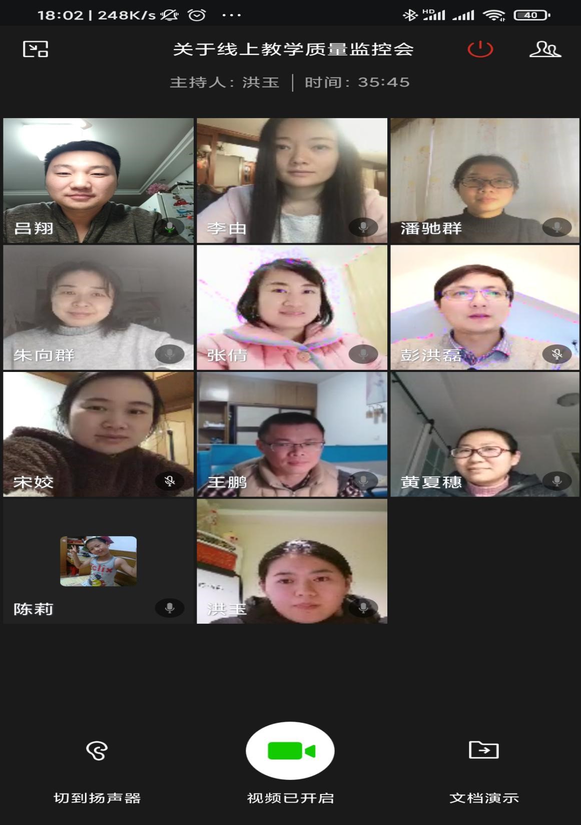 会上,洪玉首先介绍了“线上开学第一天”教师的线上教学总体情况,针对线上教学质量监控的各环节和标准进行了分析,就线上教学出现的共性问题进行了说明。朱向群、王鹏、陈莉逐一反馈了线上听课的感受与想法,各系系主任就线上建课遇到的困难、线上授课面临的问题提出建议,大家一致认为“线上开学第一天”我院教师和学生的充分准备使得线上教学秩序总体良好。吕翔表示一定要集中资源,利用“雨课堂”、腾讯QQ、钉钉等多个平台创新方式,多举措抓好线上教学工作,努力做到疫情防控不放松、教学标准不降低。