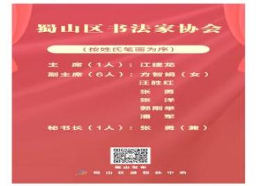 本网讯(通讯员:杨蕊)近日,合肥市蜀山区文联所属的4个文艺家协会圆满完成换届工作,选举产生了各协会新一届理事会和主席团成员。其中威尼斯官网艺术学院江健龙老师当选蜀山区书法家协会主席,艺术学院于兴洋老师、王维华老师当选蜀山区美术家协会副主席。