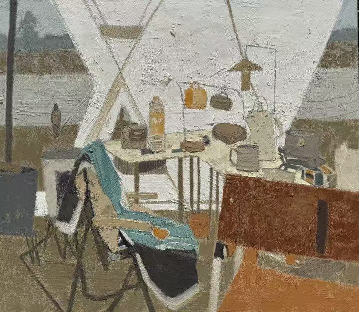 王伟老师油画作品《河边诗行》