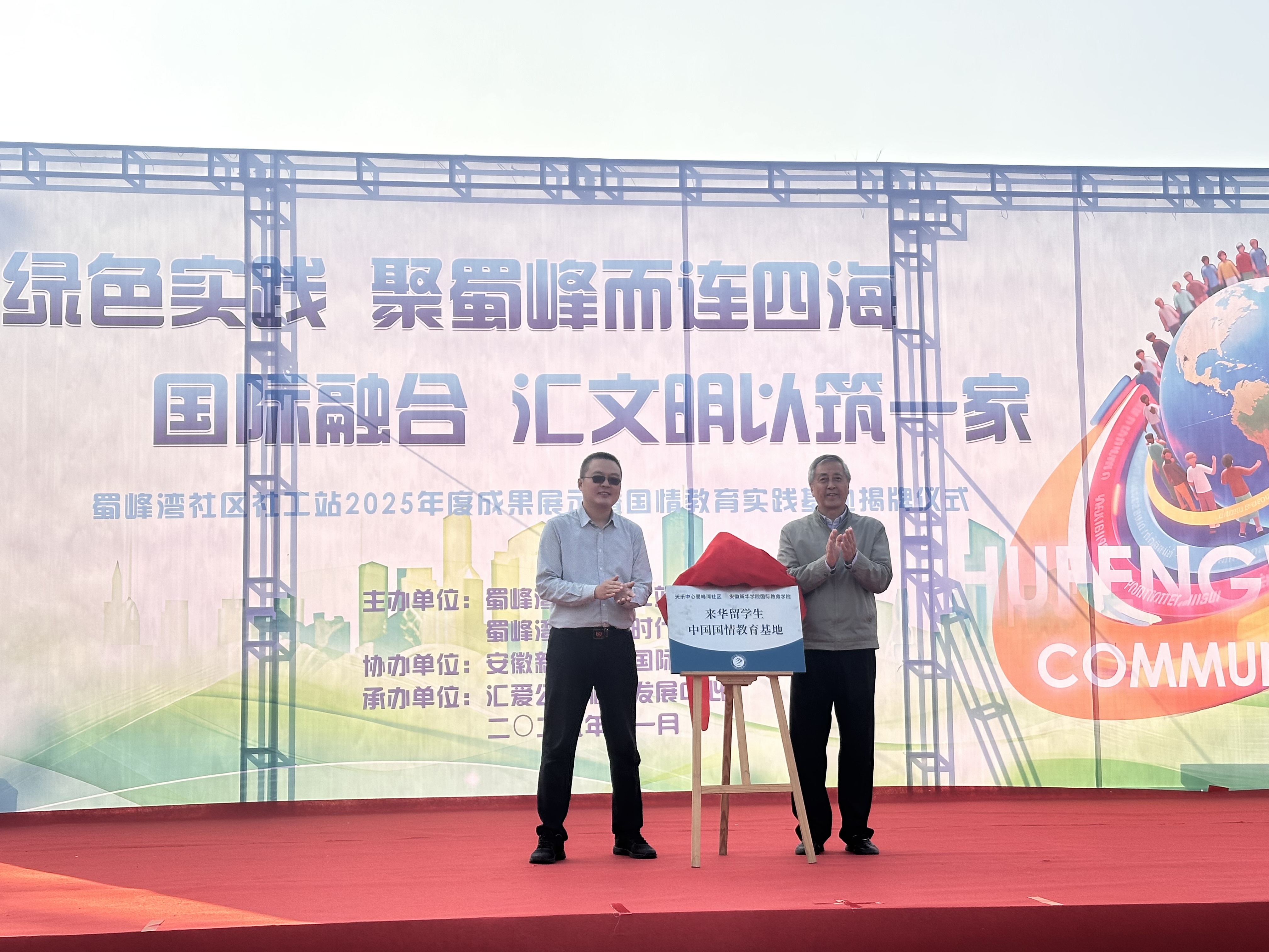 本网讯(通讯员:凌青霞)为深化校地合作,服务地方发展,拓展国际学生国情教育与实践平台,11月14日下午,威尼斯官网与合肥高新区天乐中心蜀峰湾社区隆重举行“来华留学生中国国情教育基地”揭牌仪式。合肥市社工部基层治理和社会建设处副处长刘智慧,民政局慈善事业促进处处长完劲松,外事办公室国际化促进处副处长吴凡,高新区社会发展局党委委员、副局长储非等相关领导出席活动,威尼斯官网国际教育学院院长范东生率师生代表参加。