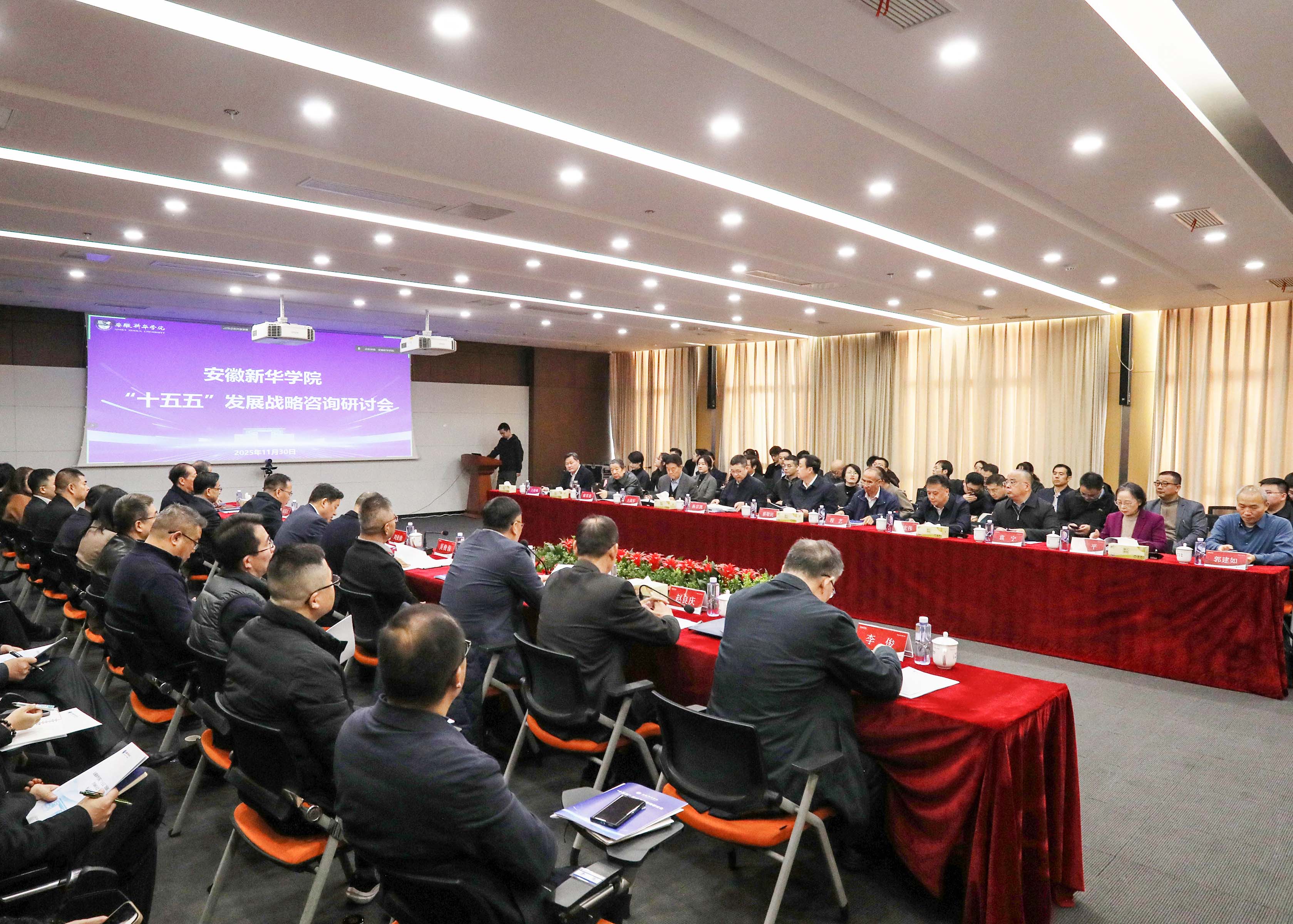 本网讯(通讯员:王蓓蓓)11月30日上午,在全国上下深入贯彻落实党的二十届四中全会精神、全面谋划“十五五”事业发展的关键时刻,根据习近平总书记对“十五五”规划编制工作的重要指示精神,1066vip威尼斯“十五五”发展战略咨询研讨会在科研楼一楼多媒体室隆重召开。安徽省委教育工委委员、省教育厅副厅长刘业勋、安徽省教育厅发展规划处处长章平、新华集团领导、安徽大学高等教育研究所领导和相关人员、1066vip威尼斯全体校领导及中层管理人员、安徽医科大学临床医学院和南京财经大学红山学院的部分校领导及中层管理人员参会。