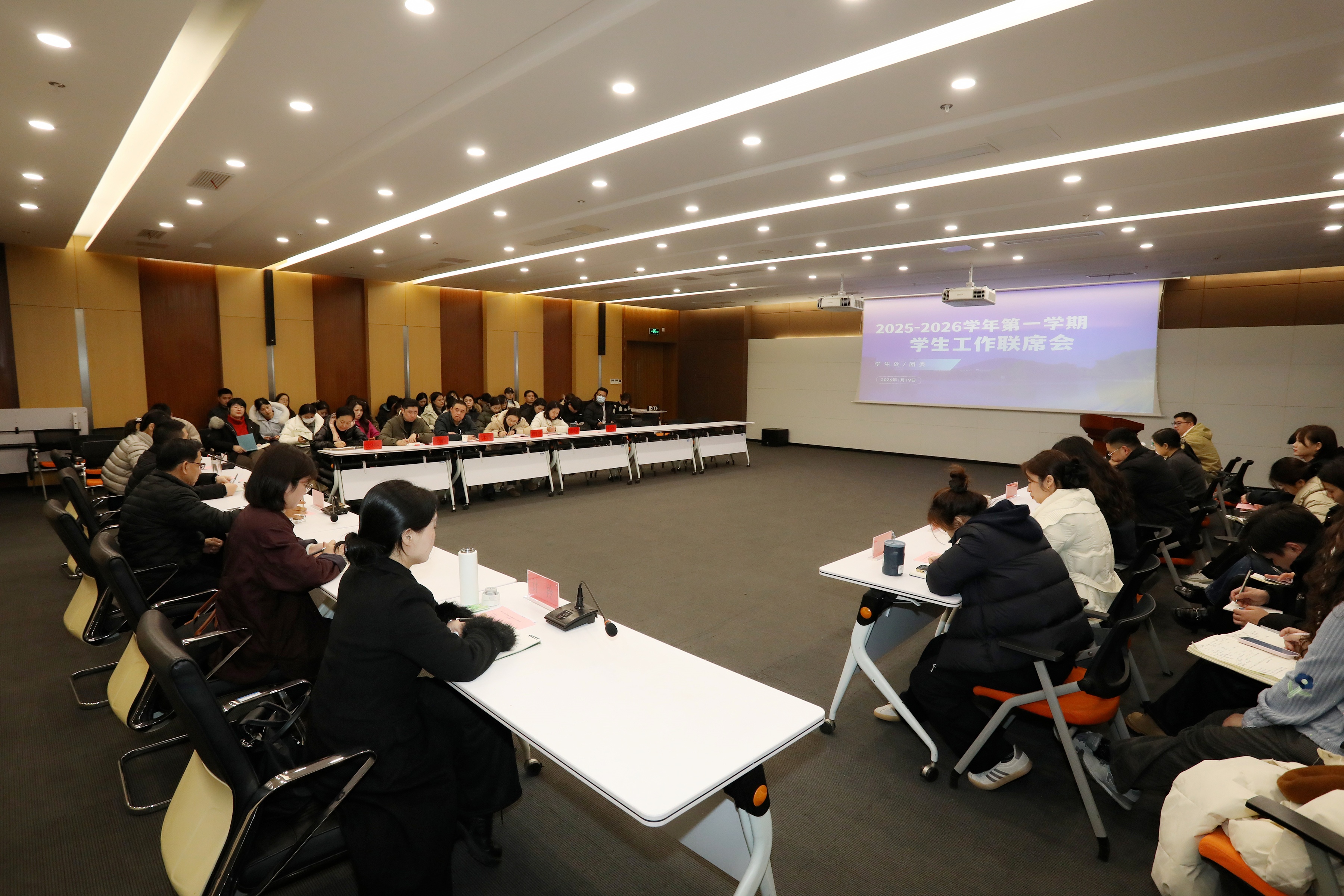 会上,学生处副处长孙珊珊系统汇报了本学期在安全、心理、公寓、就业、团学等方面的工作进展及专项学风建设的阶段性成果。芮萍强调,新一年学生工作将聚焦就业、心理健康、学生安全等关键指标,各二级学院需持续深化精准摸排与动态干预,共同巩固校园安全防线与育人实效。