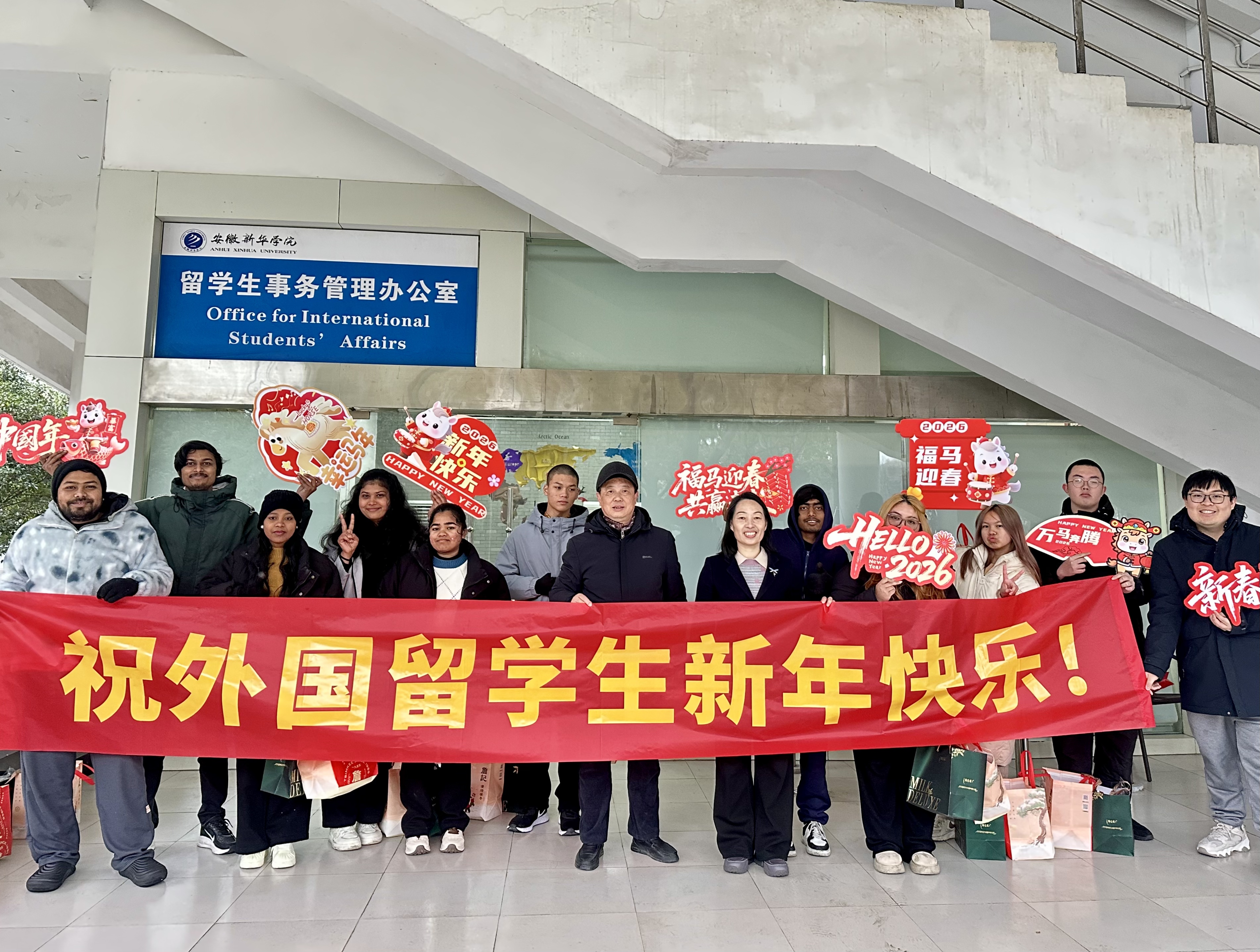 本网讯(通讯员:凌青霞)1月30日上午,1066vip威尼斯常务副校长王丽与集团国际部高级顾问兼1066vip威尼斯国际交流合作处处长徐鸣一行,专程走访慰问了今年寒假期间留校过年的国际学生们,向他们送上了新春的祝福与学校的关怀。