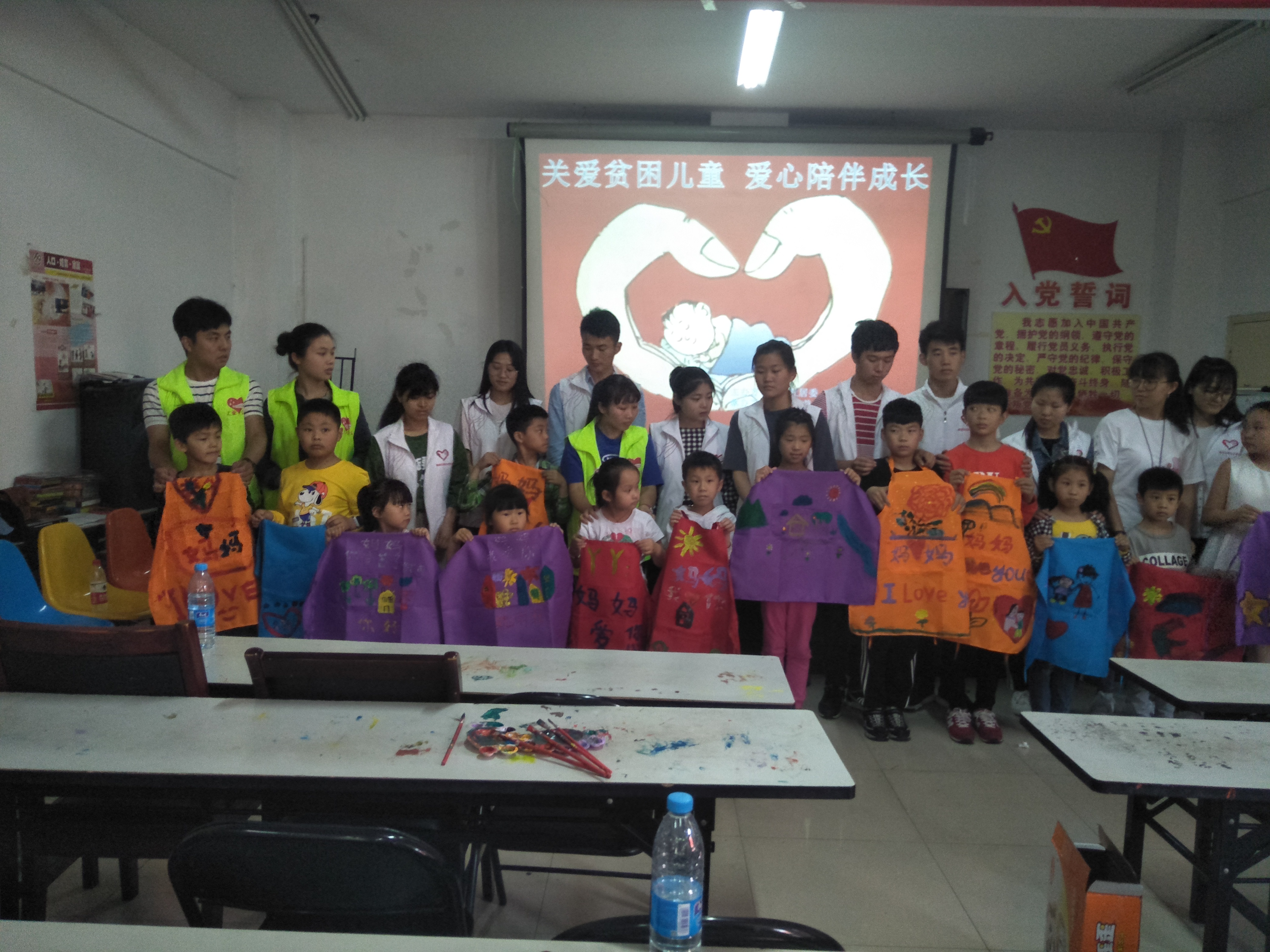本次活动由汇爱公益负责人姬国印负责联系指导,活动对象为山湖社区的困难儿童。 首先,志愿者们向小朋友们讲述母亲节的来历。由志愿者一对一指导小朋友在围裙上画出自己喜欢的图案,将此作为母亲节礼物。随后,小朋友依次上台讲解绘画的理念和含义,评选出优秀的作品,并分发书包、文具盒等奖品。绘画完成后,小朋友把满满爱意的手绘围裙送给自己的妈妈。