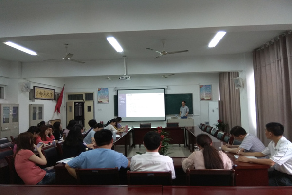 讲堂上,苏飞博士结合自身的经验,首先对如何做学术研究以及如何规划学术职业生涯进行了详细的阐述,并针对教师中普遍存在的论文难发表、数据难找、以及数据处理中存在的问题进行详细解答,同时就实证论文写作及发表中的技巧及重要关键点进行了详细说明。特别是如何做实证研究这一部分,苏飞博士从如何选题、文献调研、数据来源、模型思路、结果分析、后期工作、案例分析7个模块,详细地对如何做实证研究进行了生动有趣的讲解。最后,苏飞博士还和其他老师进行了互动,仔细解答了大家在学术研究和论文发表上的问题,赢得在场教师的阵阵掌声。