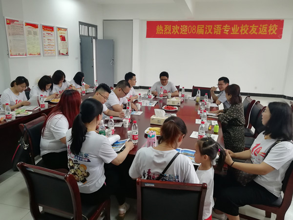 本网讯(通讯员:彭洪磊)6月3日,文化与新闻传播学院2008届汉语专业16名校友返回母校,举行毕业十周年庆祝活动。在207会议室,学院举办了校友座谈会,热情欢迎校友们回母校。院长助理朱向群、中文系主任王鹏、行政秘书彭洪磊与校友们进行了亲切座谈。