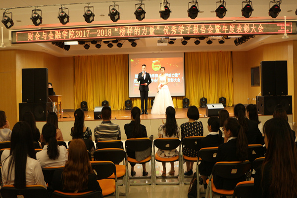 本网讯(通讯员:芮萍)为弘扬先进,树立典型,5月30日晚,财会与金融学院于在校大学生活动中心召开2017-2018年度“榜样的力量”优秀学子报告会暨年度表彰大会。执行院长黄君婕、副院长窦梅朋、学管秘书以及全体辅导员及300多名学生代表共同参加了此次大会。