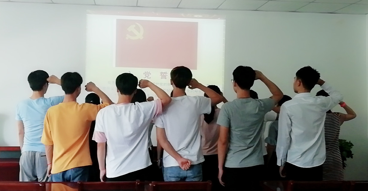 会议最后,本次被组织吸收为预备党员及转正的同志面向党旗进行了入党宣誓。