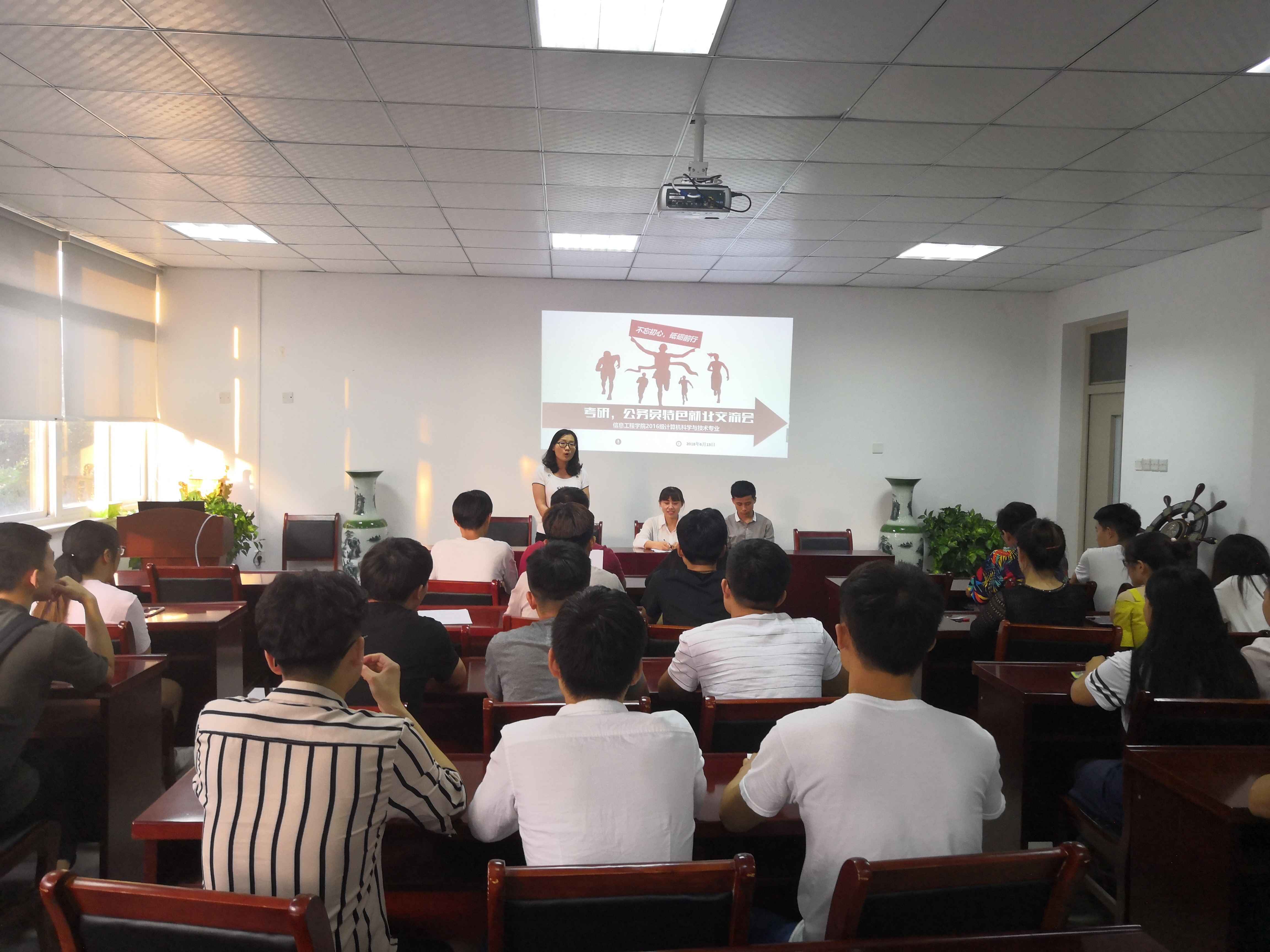本网讯(通讯员:李苗)为帮助学生明确职业规划,激发考研、考公务员的热情,增强有考研、考公意向学生的信心。6月13日晚,信息工程学院在信息工程学院会议室举办了“不忘初心,砥砺前行”考研、考公务员特色就业经验交流会。2016级计算机科学与技术专业全体考研、考公意向学生参加了本次交流会。