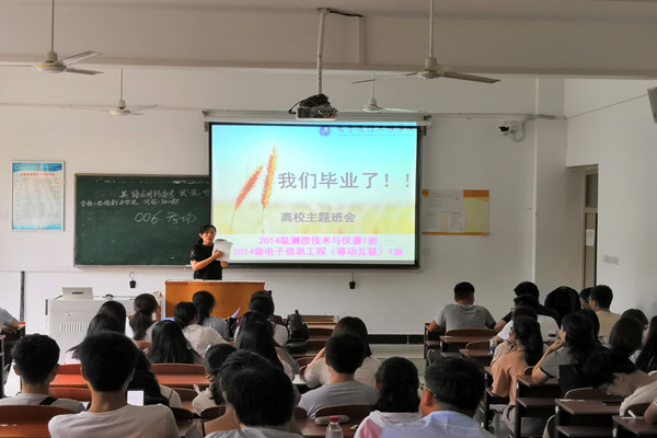 6月19日,18个毕业生班级在辅导员的组织下开展了离校前最后一次主题班会。辅导员们和学生们一起回顾过往、把握当下、展望未来,并围绕离校手续办理的相关流程及注意事项为毕业生们进行了仔细的说明。毕业生们相互交流,表达了对母校和广大教师的感激、眷恋和不舍。会后,辅导员们代表电子通信工程学院向毕业生发放了毕业纪念品。