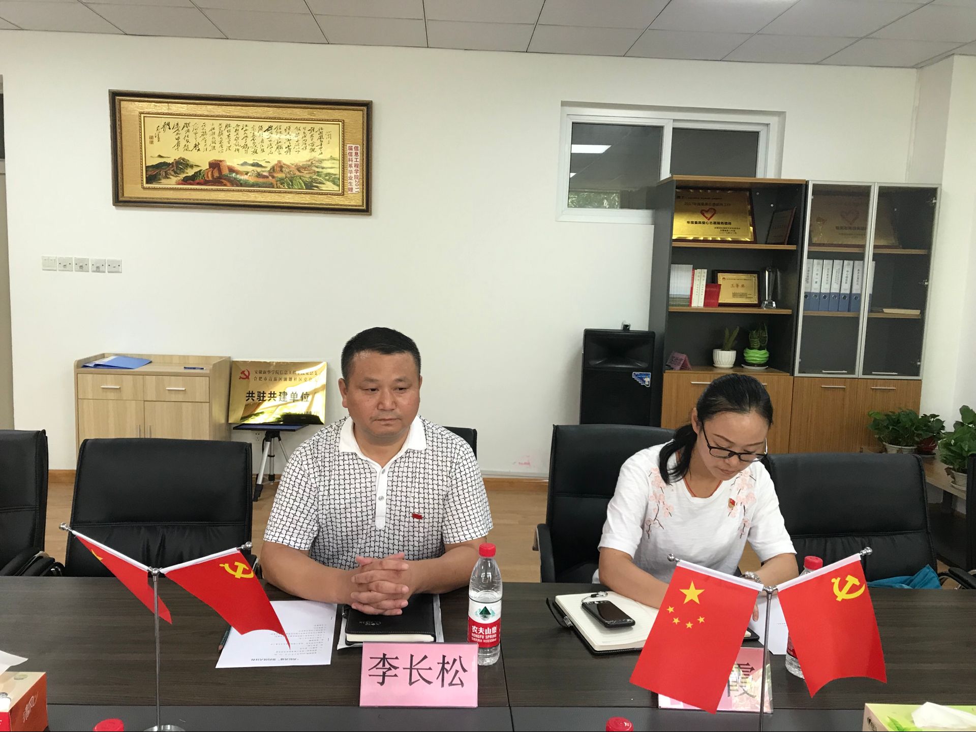 首先,俞士毛代表信息工程学院党总支向李长松一行的到来表示欢迎,并介绍了信息工程学院党建工作的基本情况。他表示,“共驻共建”工作是新时代新形势下强化服务型党组织建设的体现,是努力构建高校联系社区党建工作的长效机制。定期组织开展党建工作交流、文明共建、志愿服务等活动,充分发挥学院自身优势,配合社区做好群众性、公益性、社会性工作,以服务地方经济社会发展的实际行动树立威尼斯官网的良好社会形象。