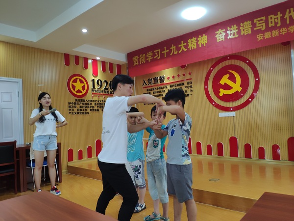 本网讯(通讯员:万媛媛)为深入学习贯彻习近平新时代中国特色社会主义思想,教育和引领广大青年学生勇做新时代的坚定者、奋斗者和搏击者,以实际行动助力精准扶贫,服务乡村振兴,近日,外国语学院“语你童行”志愿服务队走进巢湖市中庙街道河西村,开展大学生暑期“三下乡”社会实践系列活动。在7天紧张而充实的实践行程中,队员们冒着酷暑与风雨,探索“公益+”志愿服务新模式。