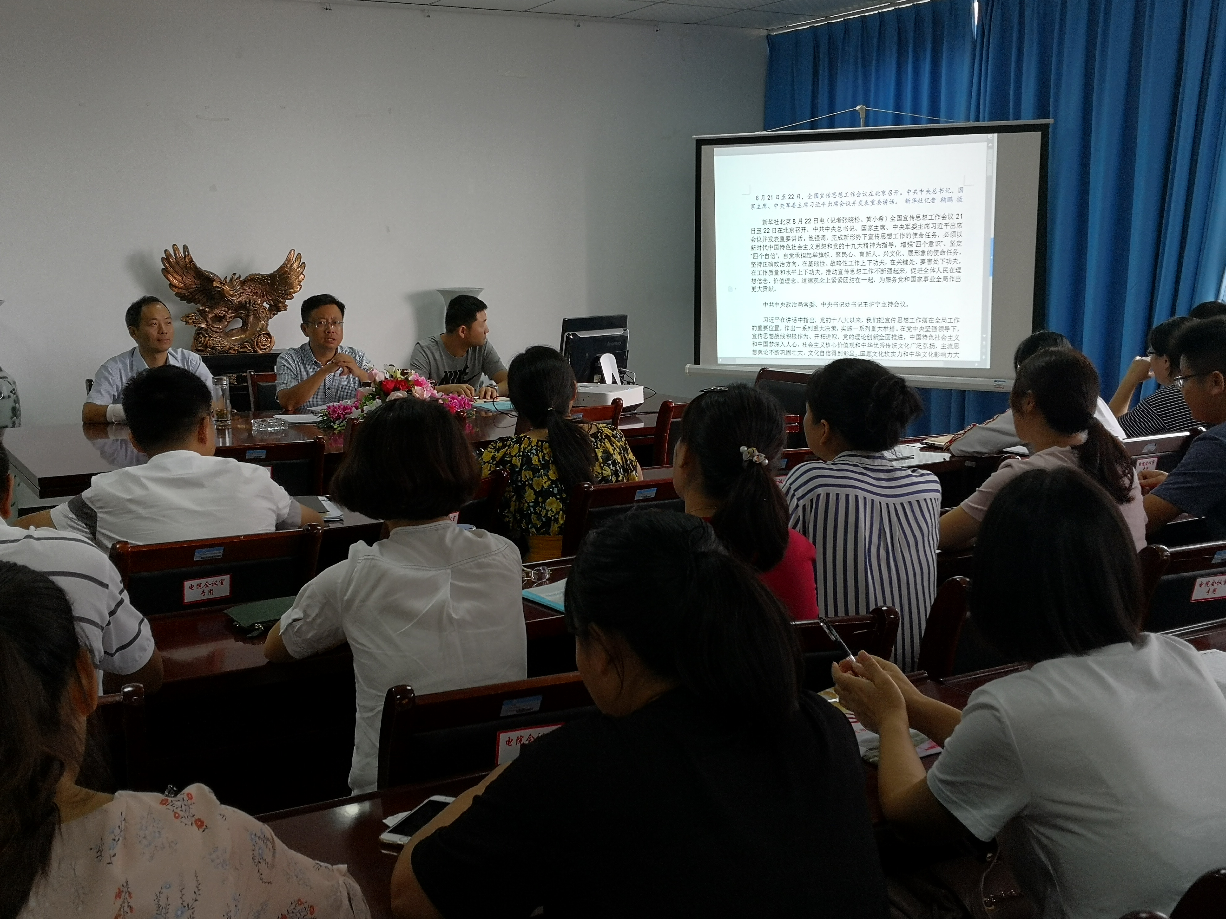 总支书记计勇指出,高校是培养社会主义建设者和接班人的重要场所,培育担当民族复兴大任的时代新人是高校的重要职责。习总书记的重要讲话精神为高校宣传思想工作指明了方向,为立德树人明确了要求。大家要认真贯彻落实会议精神,要紧紧围绕立德树人根本任务,把培养担当民族复兴大任的时代新人作为重要职责,引导广大教师潜心教书育人,教育青年学生扣好人生第一粒扣子,让理想信念在师生心中深深扎根。