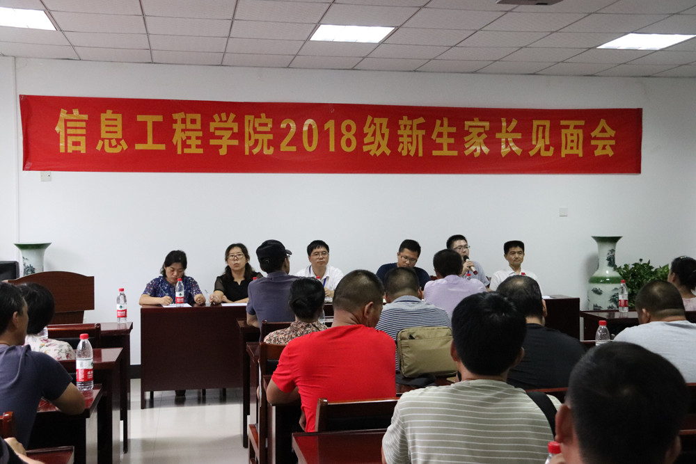本网讯(通讯员:魏居娴)为促进家校共育,让新生家长更好地了解学院的基本情况,进一步增进学校与家长间的交流与信任,信息工程学院于9月1日下午3点在13栋203召开2018级新生家长见面会。参加本次会议的教师有信息工程学院执行院长贺行佳、副院长万家华、院长助理俞士毛,教授代表吕腾、张蕊、白燕奇以及部分新生家长和学生。