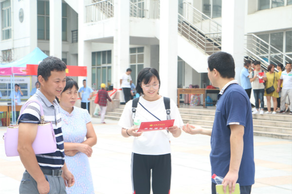 会议结束后,陆克斌来到报到现场,与未能及时参会的新生家长做进一步的沟通和交流。