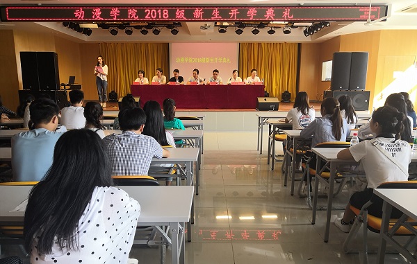 本网讯(通讯员:訚菊慧、张大勇)兰秋时节,久雨初歇。在这丹桂飘香的初秋九月,动漫学院迎来了2018级新同学。9月3日,动漫学院在校三期小礼堂举行了2018级新生开学典礼。动漫学院副院长许存福、朱诵贵,院长助理刘刚,主管秘书、系副主任、全体新生辅导员及2018级全体新生参加了会议。