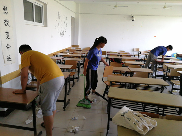 在整洁整治活动中,支部党员与入党积极分子认真打扫,他们哪怕汗水浸湿衣服,也不怕脏、累,仔细清理教室的垃圾,并努力还原教室的整洁面貌。