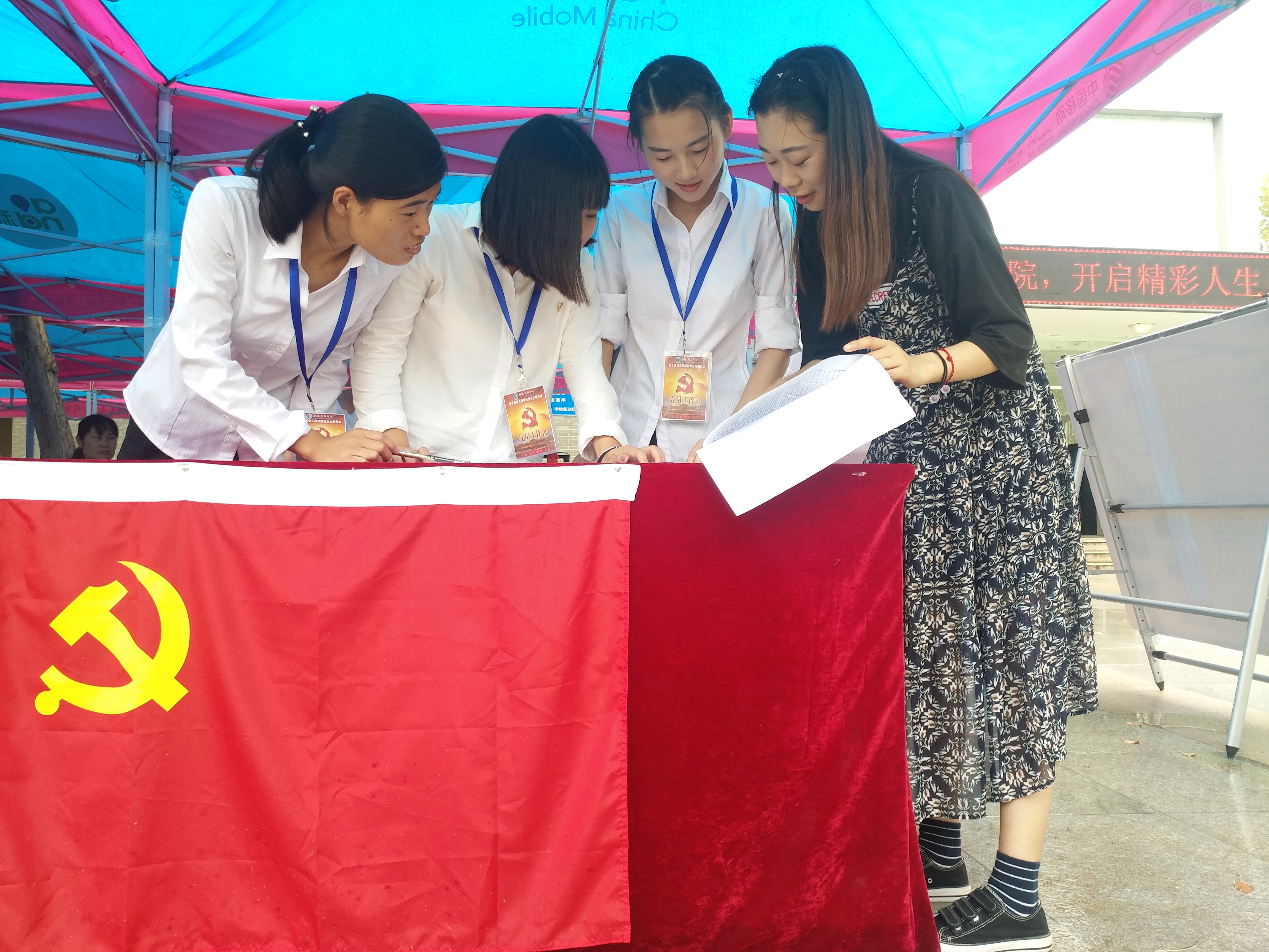 本网讯(通讯员:孙晗)为激励党员在工作中服务师生、展示先锋的作用,强化党员的示范性。电子通信工程学院党员同志亮出身份,积极参与到2018年迎新系列活动中来。