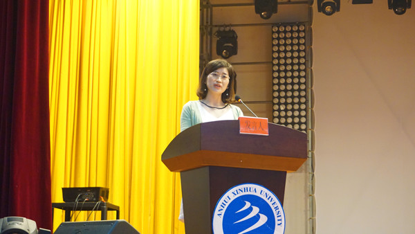 随后,信息工程学院教师代表魏居娴发言,对2018级新同学的到来表示热烈欢迎。在发言中,魏居娴针对什么是大学,以及如何读大学这两个大问题进行了讲述。从《大学》的“大学之道,在明明德,在亲民,在止于至善”到曾国藩的“盖士人读书,第一要有志,第二要有识,第三要有恒”的读书方法,从“得天下之英才而教育之”到西南联大的教育传奇,让与会的大一新生们对大学有了更多的思考。此外,作为教师代表,魏居娴还做出了表态,将秉承传道授业解惑的宗旨,成为一名学业上称职,合格的导师,也会成为生活中的朋友。