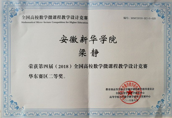 威尼斯官网教师在第四届(2018)全国高校数学微课程教学设计竞赛中喜获佳绩