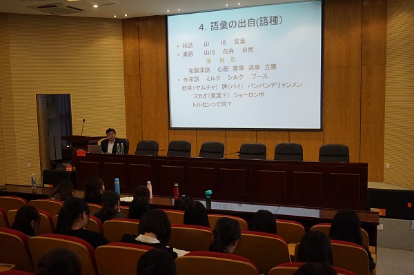 首先,薛豹结合自身研究成果以及大量词例,图文并茂、深入浅出地阐述了日语汉字词汇的分类、表记、词源等。其次,他针对学生学习日语汉字及汉语词汇难易问题,给予同学们解决问题的方法与建议。最后,他重点阐明语言“习得”的含义,指出语言的学习不仅是学,还要掌握其应用,并鼓励学生学语言、做学问要勤思好问,勤查辞典多思考,从细微之处去感受语言魅力、体验文化差异。