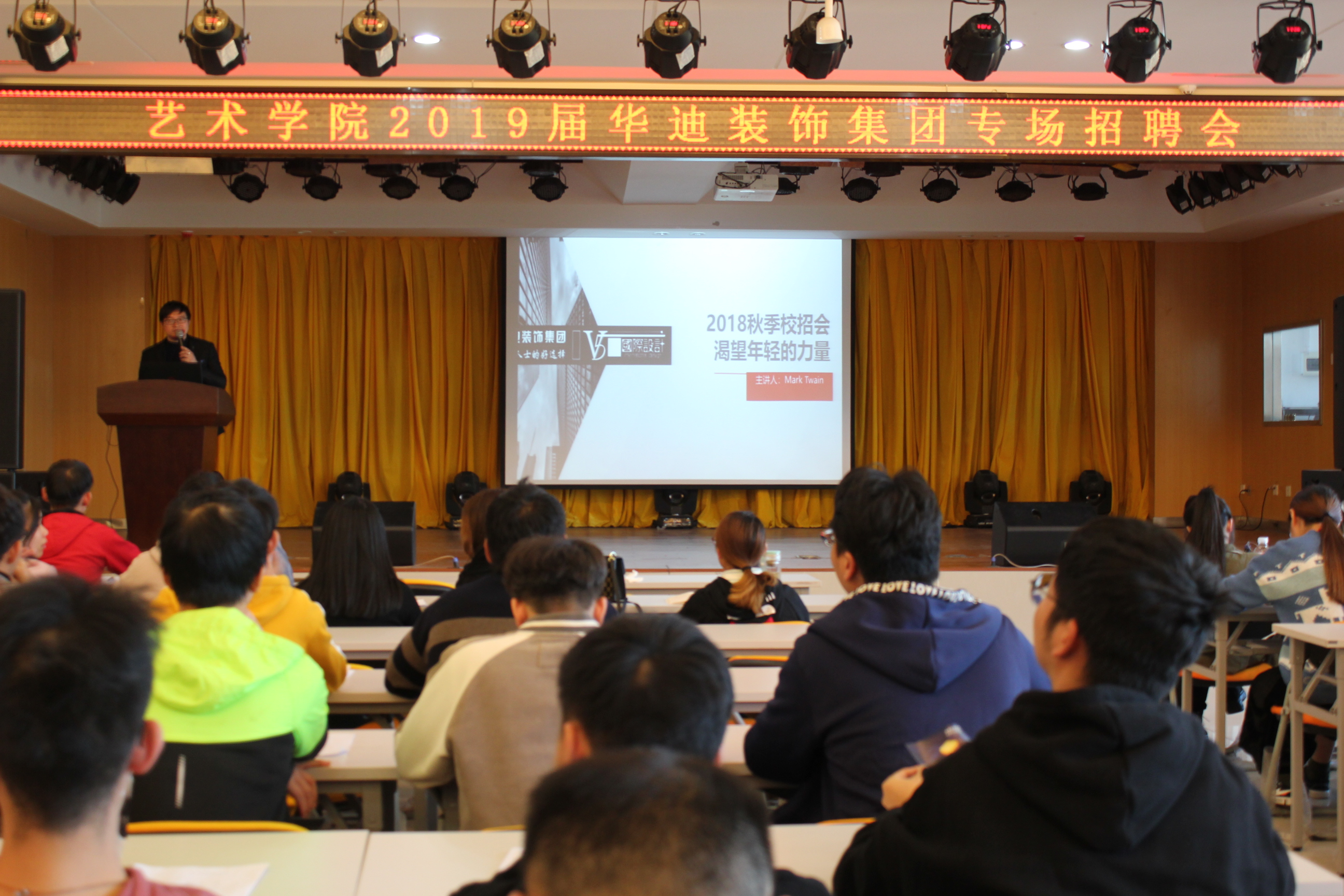 本网讯(通讯员:郑妮 摄影:盛菲菲)11月9日,艺术学院邀请安徽华迪装饰集团有限公司举办专场招聘会。本次招聘会面向艺术学院环境设计、产品设计、视觉传达、艺术设计的毕业生。