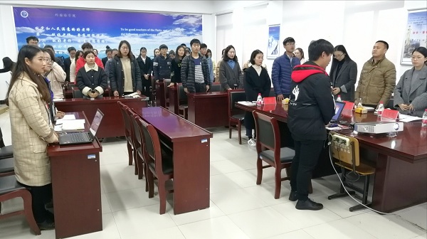 本网讯(通讯员:万媛媛) 为贯彻落实《关于开展全省高校共青团“活力团支部”创建遴选活动的通知》的精神,深入实施高校基层团支部“活力提升”工程,12月3日,外国语学院开展了2017-2018学年“活力团支部”的评比活动,外国语学院副院长杨光及相关教师代表担任此次评选活动的评委,部分班级代表参加了本次评选。