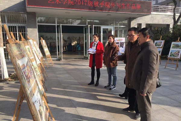 本网讯(通讯员:黄义婷)12月17日,艺术学院举办2017级秋季院外写生作品展。艺术学院执行院长许存福、院长江河、副院长朱诵贵等一行参观了此次作品展。