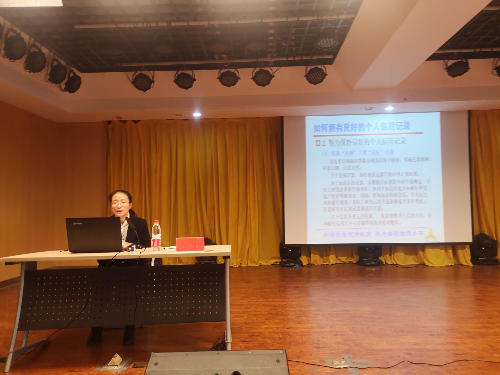 讲座开始,刘丽丽介绍了征信的基本概念,并强调个人征信的情况直接影响人们的工作和生活等各个方面。她向同学们介绍了征信系统建设概况。她指出我国的征信系统已基本建设完成,任何的失信行为都会被即时记录在个人征信中,大学生作为公民在征信的过程中要诚实,不虚假。随后,她还对如何建立良好的个人信用记录及一些热点问题进行详细点的解读。通过例举了几个大学生陷入个人征信危机的例子,让学生充分认识到不良的借贷、恶意拖欠助学贷款存在的隐患和风险。她还对国家助学贷款还款确认和毕业生贷款诚信进行解读,并呼吁同学们要诚信还款,远离不良网贷行为。最后,刘丽丽表示:“这次活动讲个人征信主要目的是让诚实守信的信念在青年中普及,发挥诚信建设在征信中的作用。希望同学们做一个诚信人,用诚信书写青春。”