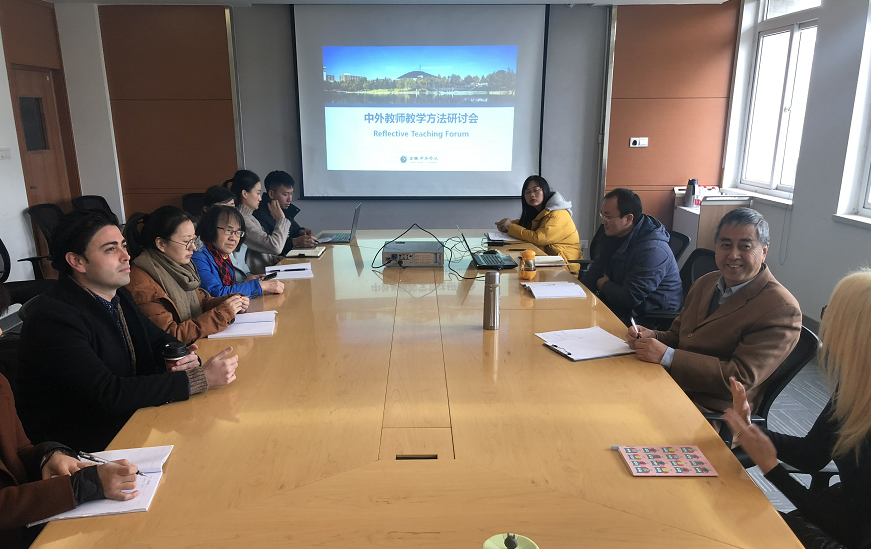 本网讯(通讯员:李由)12月19日,国际教育学院召开中外教师教学方法研讨会。国际教育学院院长范东生、院长助理黄喆、国际教育学院全体中外教师及外国语学院教师代表参加会议,会议由范东生主持。