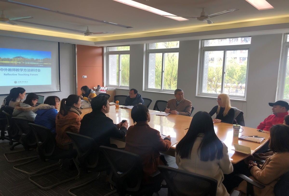 随后,教师们就中国学生与留学生学习第二语言的特点进行讨论。Charles以自己学习汉语的经历介绍了外国人学习汉语时会遇到的语言和文化障碍;中方教师介绍了自己在初级汉语阶段采用简单中文教学,通过日常交际增加留学生的语言能力的教学策略。并交流了中西方教育的差异,例如中国的老师更多侧重于督促学生学习。外教表示将会从学生心理角度去发现学生学习困难背后的原因再采取激励手段。此外,外国语学院3位老师也积极参与了发言交流。