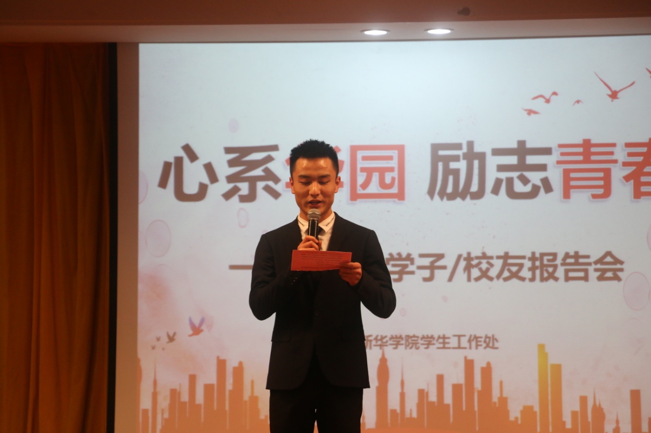 本次报告会由国家奖学金获得者甘世豪主持,国家奖学金获得者苗秀敏、程王峰,出境研修奖获得者马芙蓉,校友刘士才、吴欲飞分别向在场同学们作精彩的报告。优秀学子以《心怀感恩,努力奋斗》《开拓视野,学以致用—浅谈我的在学心得》《把眼前做好,一切都好了》《把习惯的养成变成一种习惯》《行走中认识世界》为报告主题,分享了他们的不忘初心、努力学习、拼搏进取的成长励志故事。最后,优秀学子勉励在场学生成功需要背负汗水和泪水,需要顽强不息的意志和不懈奋斗的精神。