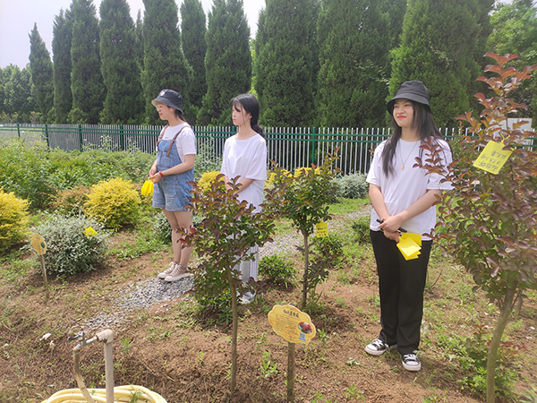 启动仪式结束后,风景园林种植基地负责人李屹楠带领师生进行实地参观,风景园林专业学生为全体师生作植物讲解,预备党员也纷纷认养相关植物。城市建设学院第二学生党支部闫昊同学在园林基地内认领一棵植物后表示:在此次活动中,通过老师和同学们的介绍,他观察到园林基地内自然的美妙,体会到劳动教育的重要性和荣誉感,并表示会和其他党员同学一起,将此次学到的精神与思想传播到身边的每一位学生中去。