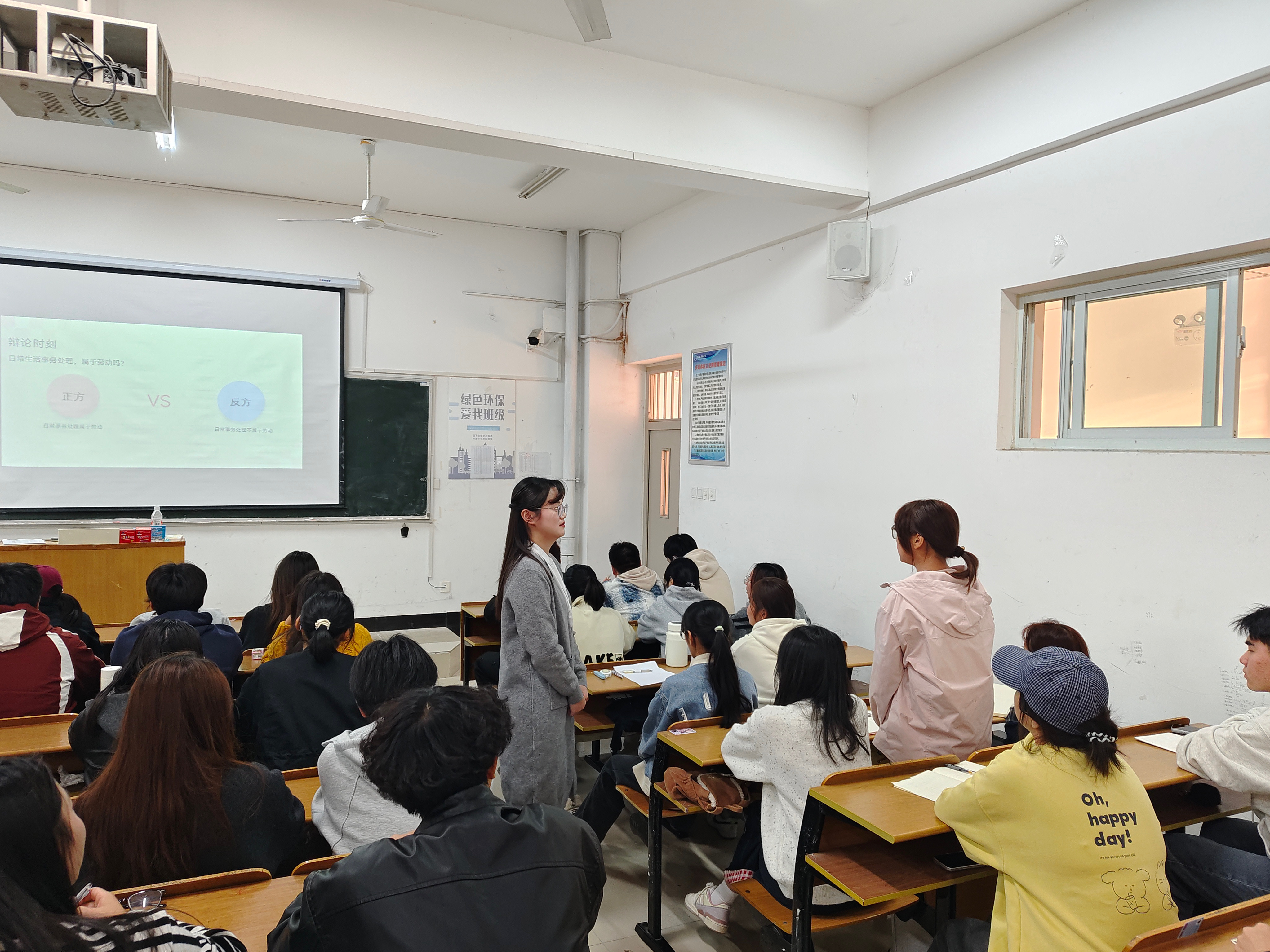 讲座中,张婷婷老师从当代大学生的切身感受出发,通过“劳动初印象”二维码互动迅速破冰,屏幕上实时生成的“累”“辛苦”“成就”“团队”等关键词,生动反映了同学们对劳动的多元认知。张老师以此为契机,引导学生们围绕“什么是劳动”展开思辨,并通过“劳动是‘成长升级’的免费健身房”这一生动比喻,深刻阐释了劳动在培养沟通、规划、抗压等可迁移能力方面的核心价值。同学们在思辨中逐步完成了从“要我劳动”到“我要劳动”的情感转变。