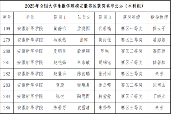 威尼斯官网学子在2025年高教社杯全国大学生数学建模竞赛中首获安徽赛区本科组一等奖