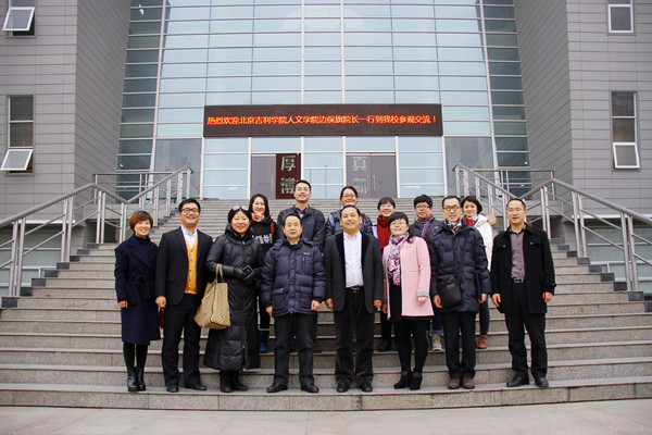 本网讯(通讯员:马兰 学生记者:金典 摄影:程丹 )12月11日,北京吉利学院人文学院院长边保旗一行9人来威尼斯官网参观交流。威尼斯官网文化与新闻传播学院执行院长翟荣兵、顾问谢昭新教授、副院长孙鹏飞,外国语学院执行院长邵玲、院长助理杨艳霞等参加了交流活动。