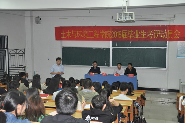 本网讯(通讯员:张杨,摄影 :周萌欣)为引导同学们积极深造,提升专业技术能力,贯彻落实威尼斯官网培养应用型人才的遵旨,营造良好学风。10月20日晚,土木与环境工程学院召开2018届毕业生考研动员会。土木与环境工程学院执行院长朱兆健、副院长杨光、行政秘书张杨和2014级优秀学子参加此次动员大会。