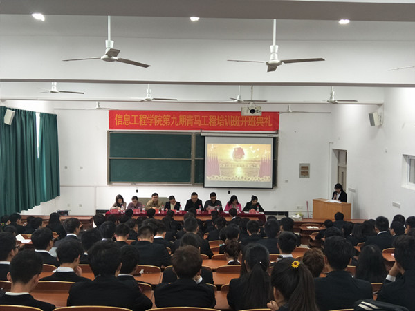 本网讯(通讯员:陈红)为提高学生干部的思想政治素质、政策理论水平、创新实践能力和组织协调能力,11月8日中午,信息工程学院第九期青马工程培训班开班。信息工程学院执行院长叶俊鹏、院长助理杨兆亮、学管秘书吴美红、辅导员代表以及近150名学生干部参加开班典礼。