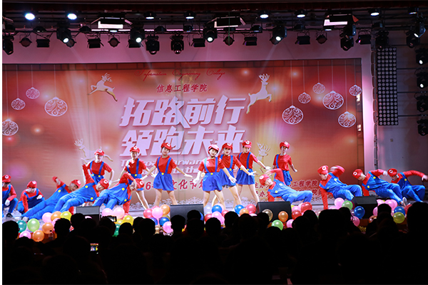 叶俊鹏为晚会致辞,他指出,文化是大学发展的灵魂,专业学科建设是学院工作的重点,2016年信息工程学院在专业学科建设、学生工作和教学科研工作均取得了喜人的成绩。叶俊鹏鼓励全体师生投入e文化盛宴,传承信工精神。信息工程学院副院长万家华宣读了《关于表彰2016年信息工程学院在国家级、省级比赛中获奖学生及指导老师的决定》,杨兆亮宣读了《关于表彰信息工程学院2016年各类学生比赛获奖班级及个人的决定》《关于授予柴佳莉等10名同学“信息工程学院2016年十佳大学生”称号的决定》。晚会现场领导、老师对分别获得创新创业ERP管理大赛 、计算机组装调试技能大赛、单片机应用技能大赛、各类文体活动比赛一等奖的学生代表颁奖。