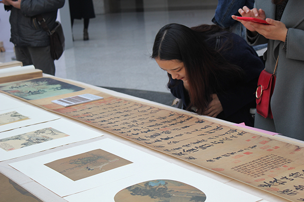 当天在阳光大厅共展示了近100件馆藏绘画和书法经典,有范宽的《溪山行旅图》、李唐的《万壑松风图》、郭熙的《早春图》、黄公望的《富春山居图卷》等绘画史上的传世名作;有张旭的《草书古诗四帖》、苏轼的《黄州寒食诗》、米芾的《蜀素帖》、徐渭的《行书七言绝句》等书法史上的不朽杰作;也有“北宋四大家”和“南宋四家”、“元四家”、明代的“吴门画派”、清代的“金陵画派”、“扬州画派”、“四僧”等经典名作,涵盖了不同时期的书画名家的传世经典之作。