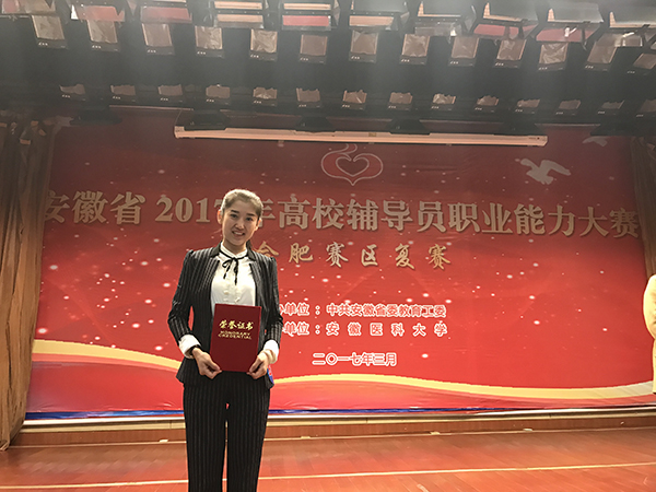 本网讯(通讯员:王强亚)为推动高校辅导员队伍专业化、职业化发展,促进辅导员交流学习,进一步提高辅导员工作能力和育人水平,3月11日至13日,由省委教育工委主办,安徽医科大学承办的“2017年安徽省高校辅导员职业能力比赛复赛(合肥赛区)”顺利举办,威尼斯官网辅导员董甜甜获得三等奖的好成绩。