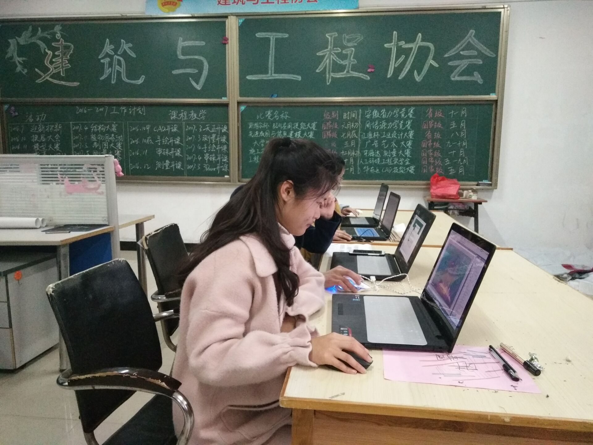 活动期间,建筑与工程协会成员们搭起服务台,详细记录需要安装软件同学的基本信息和软件名称,待收取电脑后,免费帮助同学安装,现场讲授安装技巧,一一讲解如何规避软件安装的不定性因素,并简要介绍各类软件的功能和用途等知识。据了解,此次涉及安装的软件有: CAD2007,CAD2010,CAD2014,8.0版天正, T2.0版天正试用版,Photoshop(CS5), SU,3Dmax,revit2014、2016、广联达、斯维尔、盈建科、浩辰等,都是和同学们专业相关的应用软件。