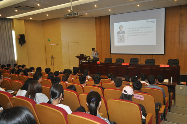 在一个半小时的时间内,冯华娓娓道来,凭借丰富的开发经验和雄厚的技术实力,给大家开展了一场别开生面的讲座。他介绍了基于嵌入式系统的若干概念,对嵌入式系统的应用、物联网和嵌入式的区别、嵌入式系统在物联网中的技术应用和前景进行阐述。其次,介绍了嵌入式应用的丰富场合,让听众对嵌入式发展程度和应用场合有了深刻的理解,并对嵌入式的市场前景进行了分析,拉近了学生和就业岗位的距离。最后,他还以智能车为样例,进行了现场操作和讲解分析。
