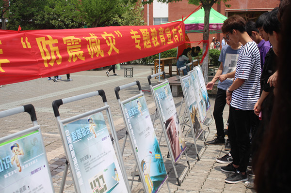 5月11日上午,由保卫处组织消防志愿者在中快广场开展了防震减灾科普知识图片展,现场向广大师生发放了《地震的自救与互救》宣传彩页,同时重点讲解了地震发生时如何紧急避险及紧急逃生的方法。