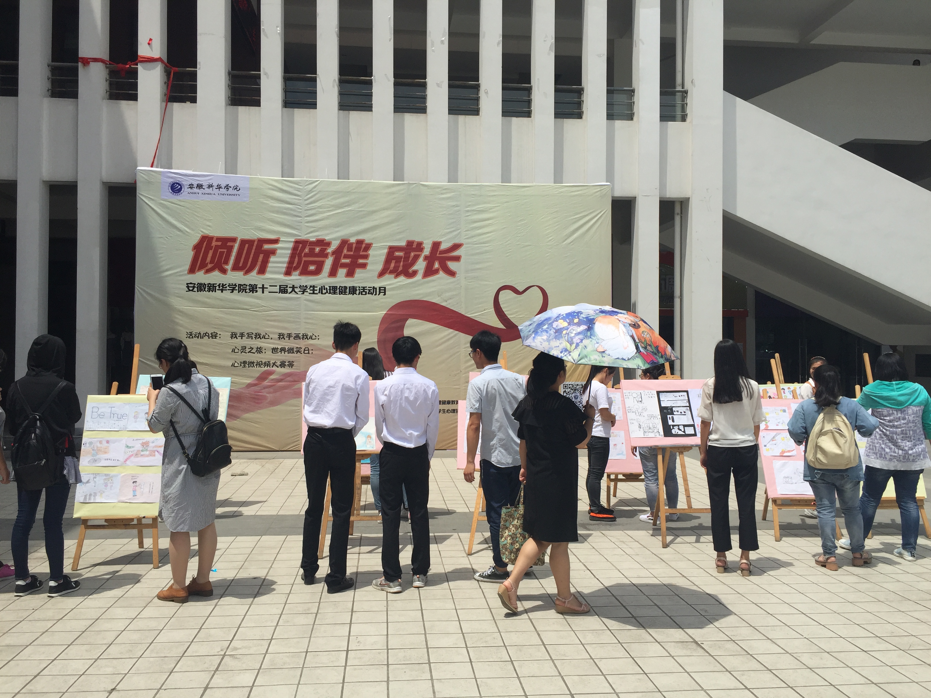 本届心理健康宣传月为期近一个月,以“倾听 陪伴 成长”为主题,以期大学生能够在生活、学习、工作中相互倾听,彼此陪伴,共同成长;宣传月期间,心理健康教育中心开展了一系列形式多样、丰富多彩的心理健康活动,各二级学院心理工作站也开展了结合学院特色的各类宣传活动。心理健康中心除了积极创新,举办了首届“心之微拍”心理微视频大赛外,还举办了“世界微笑日——爱的抱抱”活动,“我手写我心”心理美文征集比赛,“我手画我心”心理漫画征集比赛,“心灵之旅”参观心理中心活动,“心灵画廊”心理漫画展等一系列活动,这些活动均获得了同学们的喜爱和好评。