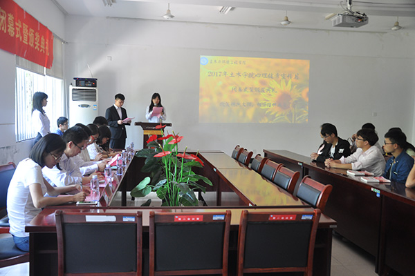 本网讯(通讯员:张杨,摄影:汪潭)5月26日,土木与环境工程学院如期举行了2017年大学生心理健康宣传月系列活动闭幕式暨颁奖典礼。土木与环境工程学院执行院长蒋亚龙,副院长李洁,院长助理谢汝强,行政秘书张杨,学管秘书魏高莉,心理辅导员何倍,各班级心理委员以及各二级学院社团代表参加了此次闭幕式。