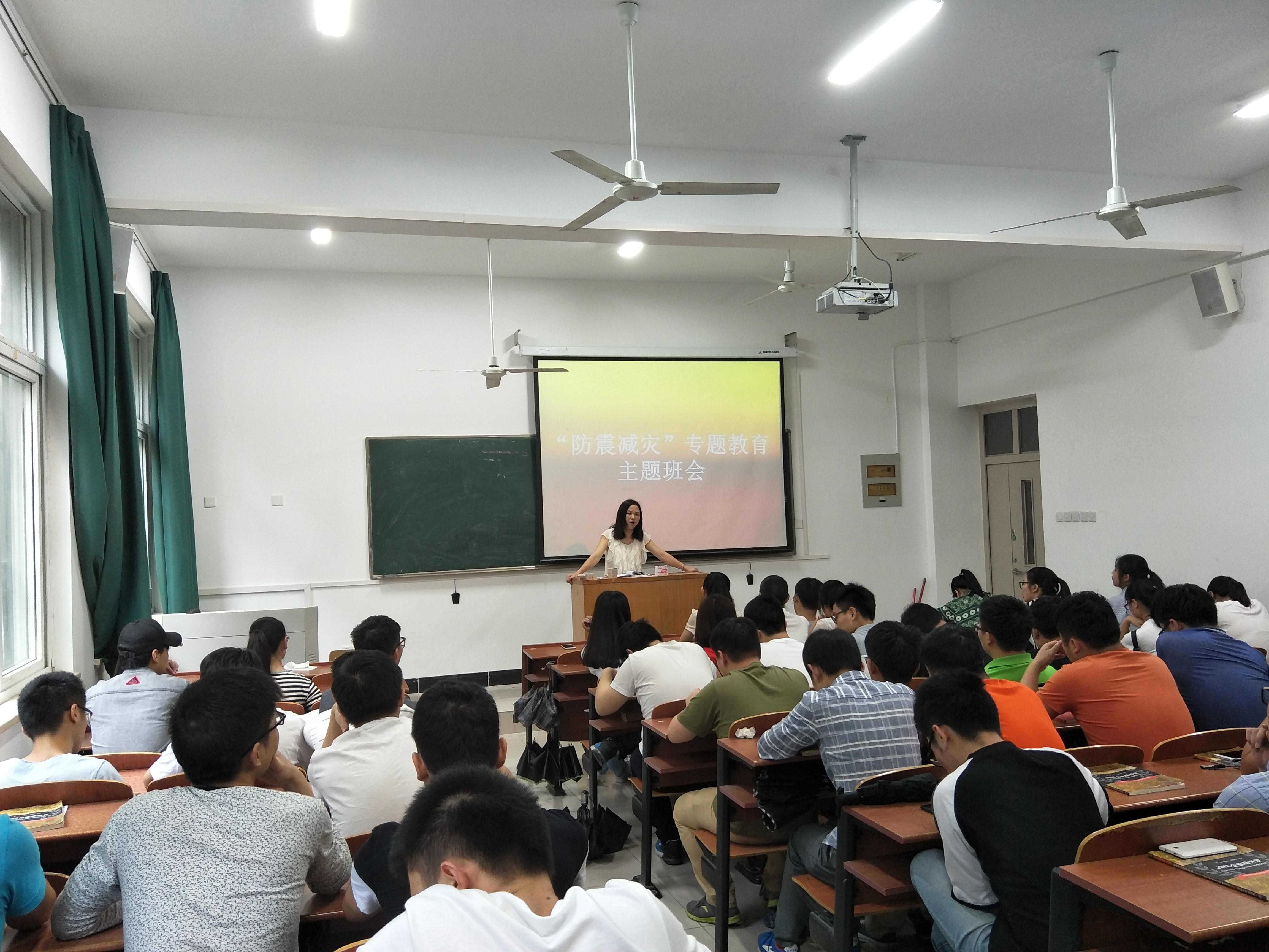 信息工程学院全体学生参与了此次“放震减灾”系列活动,在辅导员的组织下,各班级都举办了形式多样、别开生面的“防震减灾”主题班会,通过班会的形式,宣传防震减灾的相关知识。班会宣传的内容主要包含了地震前、地震时和地震后该如何施救和自救。例如震前的物质准备,如何分配每人震时的应急任务,怎样确定疏散路线和避震地点,加固室内器具,落实防火措施,妥善保管易燃物品等。学生们在班会上学会并掌握了一些基本的医疗救护技能,如止血、包扎、搬运伤员和护理方法等。各班级也适时进行了应急演习,以发现弥补避震措施中的不足之处和正确识别地震谣传。除了开展主题班会,各班级还组织观看了专题教育片,开展了抗震知识竞赛问答等活动,从各方面充实了学生们对防震减灾的认识。