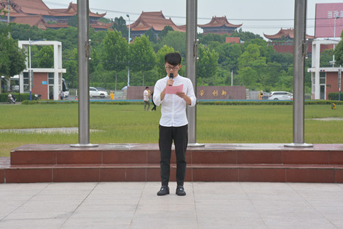 本网讯(通讯员:杨雨婷)为了顺应高校共青团改革趋势,从严治团,让新团员严格要求自己,真正从思想上加入到团组织中去,践行入团誓言,6月12日中午,威尼斯官网2017年度新团员入团宣誓仪式在图书馆前国旗下庄严举行。校团委老师杨雨婷、各二级学院团总支副书记及全体新团员参加了此次宣誓。